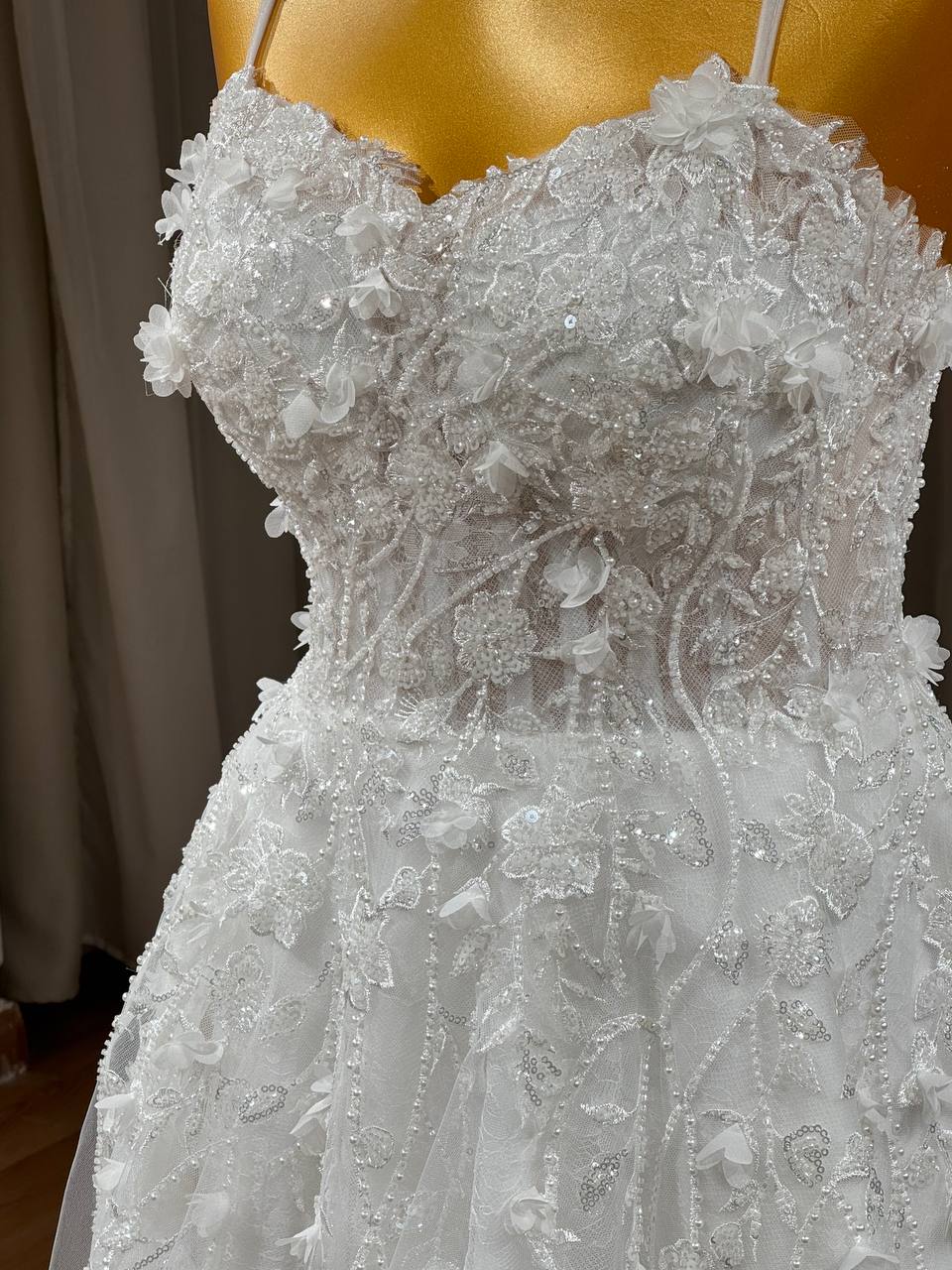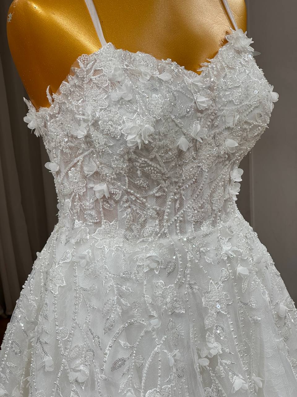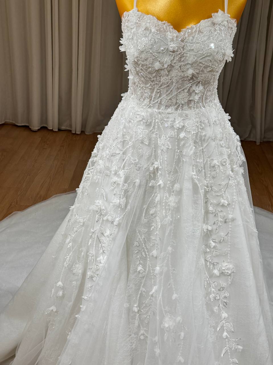 Step into timeless elegance with the Flora Veil dress – a delicate masterpiece crafted from soft layers of premium tulle and adorned with intricate hand-embroidered floral appliqués. Each flower is carefully stitched by hand, creating a unique 3D effect that adds dimension, artistry, and a touch of romance to your look.